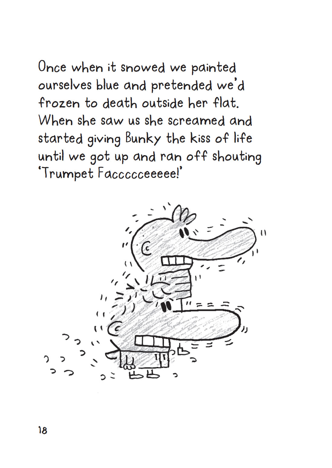 Bunky's favourite person to annoy is Mrs Trumpet Face, who lives in the block of flats at the end of the road with her twin kids and no husband.