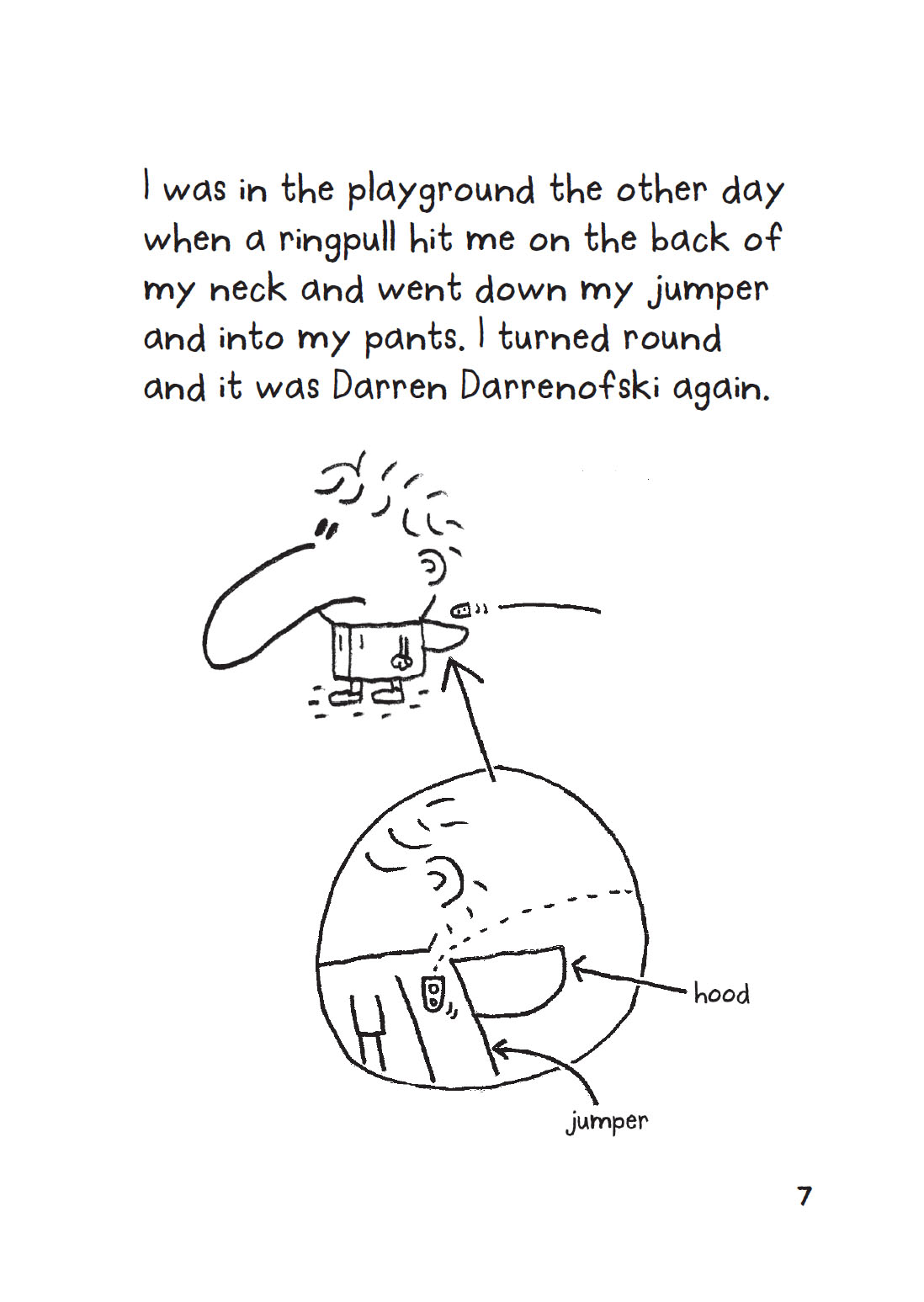 I was in the playground the other day when a ringpull hit me on the back of my neck and went down my jumper and into my pants. I turned round and it was Darren Darrenofski again.