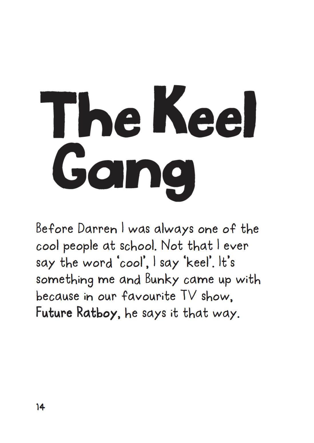 Before Darren I was always one of the cool people at school. Not that I ever say the word 'cool', I say 'keel'. It's something me and Bunky came up with because in our favourite TV show, Future Ratboy, he says it that way.
