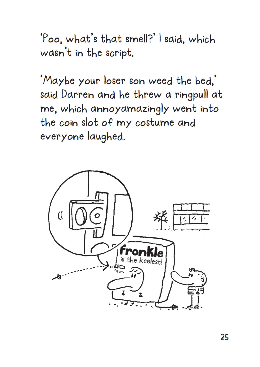 'Maybe your loser son weed the bed,' said Darren and he threw a ringpull at me, which annoyamazingly went into the coin slot of my costume and everyone laughed.