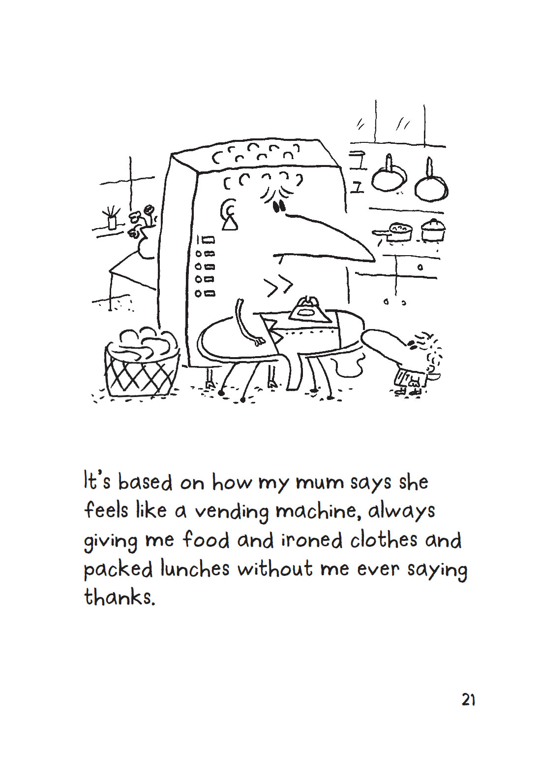 It's based on how my mum says she feels like a vending machine, always giving me food and ironed clothes and packed lunches without me ever saying thanks.