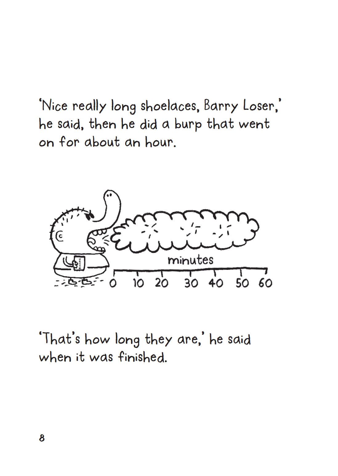 'Nice really long shoelaces, Barry Loser,' he said, then he did a burp that went on for about an hour.