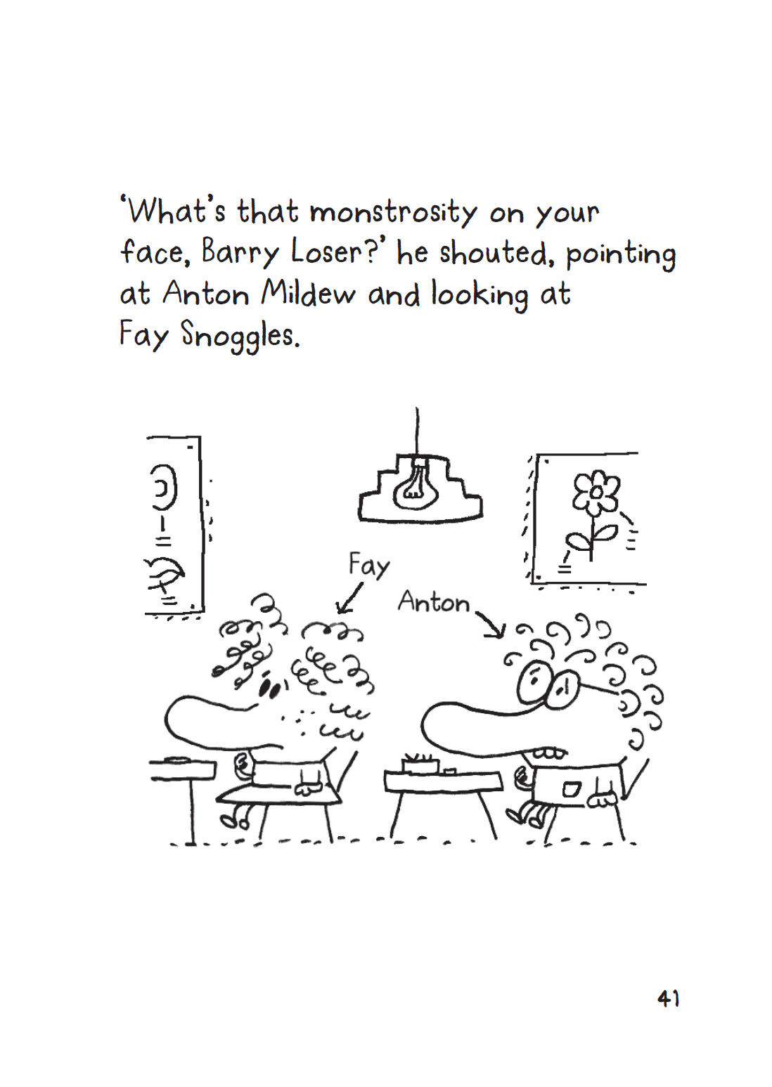 'What's that monstrosity on your face, Barry Loser?' he shouted, pointing at Anton Mildew and looking at Fay Snoggles.