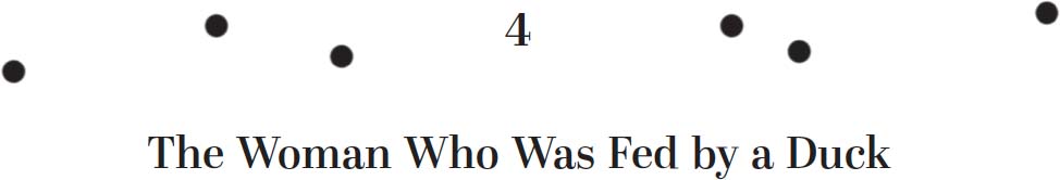 She stares at the lump of soggy bread roll she has thrown on the ground. A few ducks fight over it, peck at it, but ultimately it falls well short of the all-out battle she’d thought it would spawn, which only goes to prove how unappetizing the baguette is.