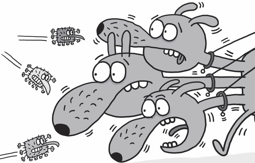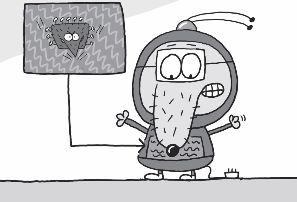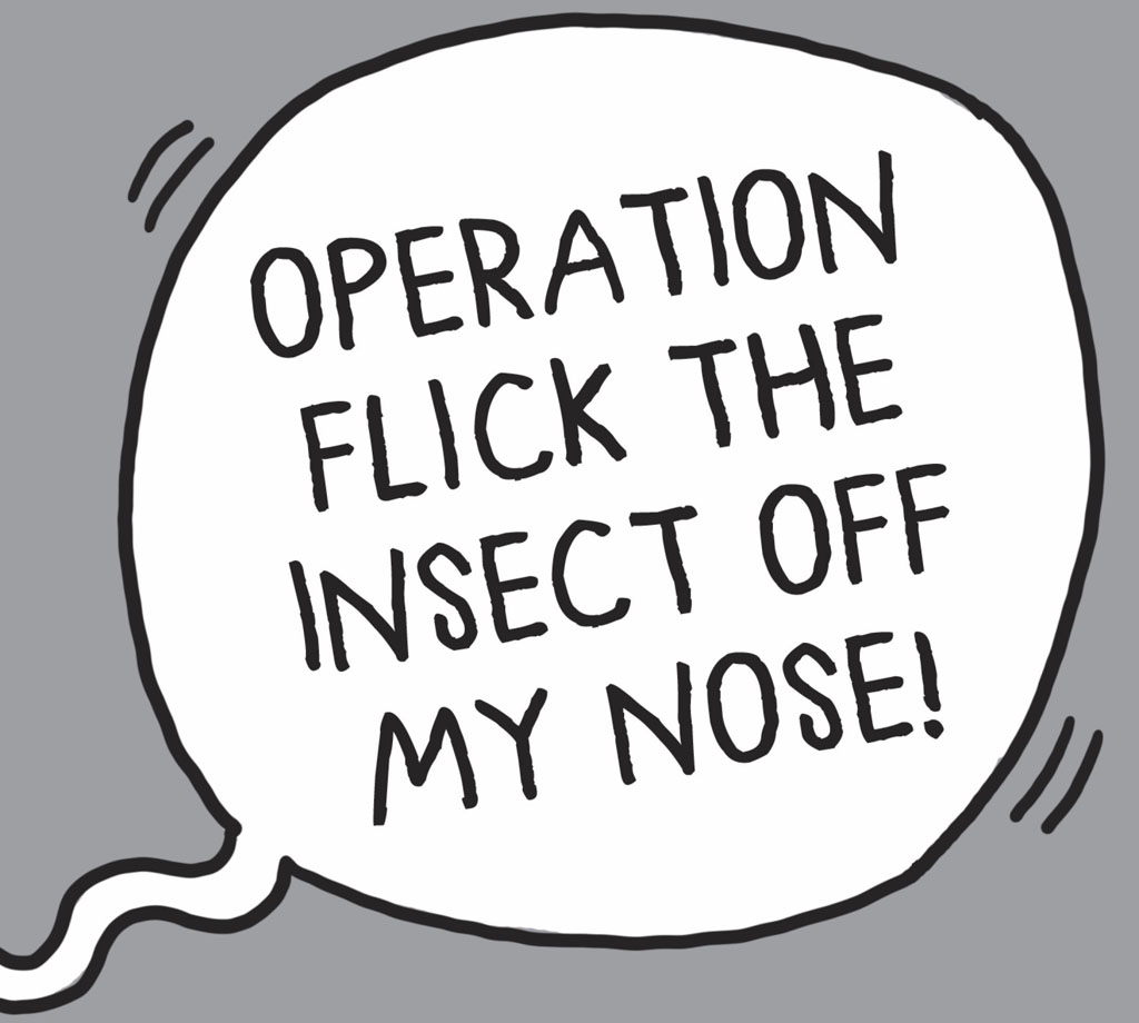 Twoface pointed his ray gun in the direction of the insect. ‘Stand back, Dr Smell!’ he shouted. ‘Take THIS, you naughty little NOM NOM!’