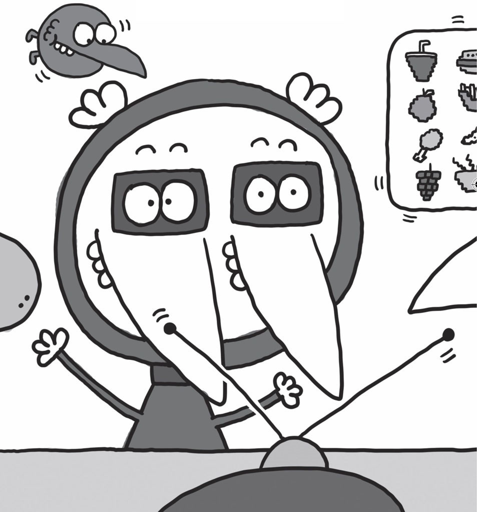 The insect, which was pink and had a long curly nose, buzzed towards Jamjar’s nostrils and opened its mouth. ‘NOM NOM!’ it growled.