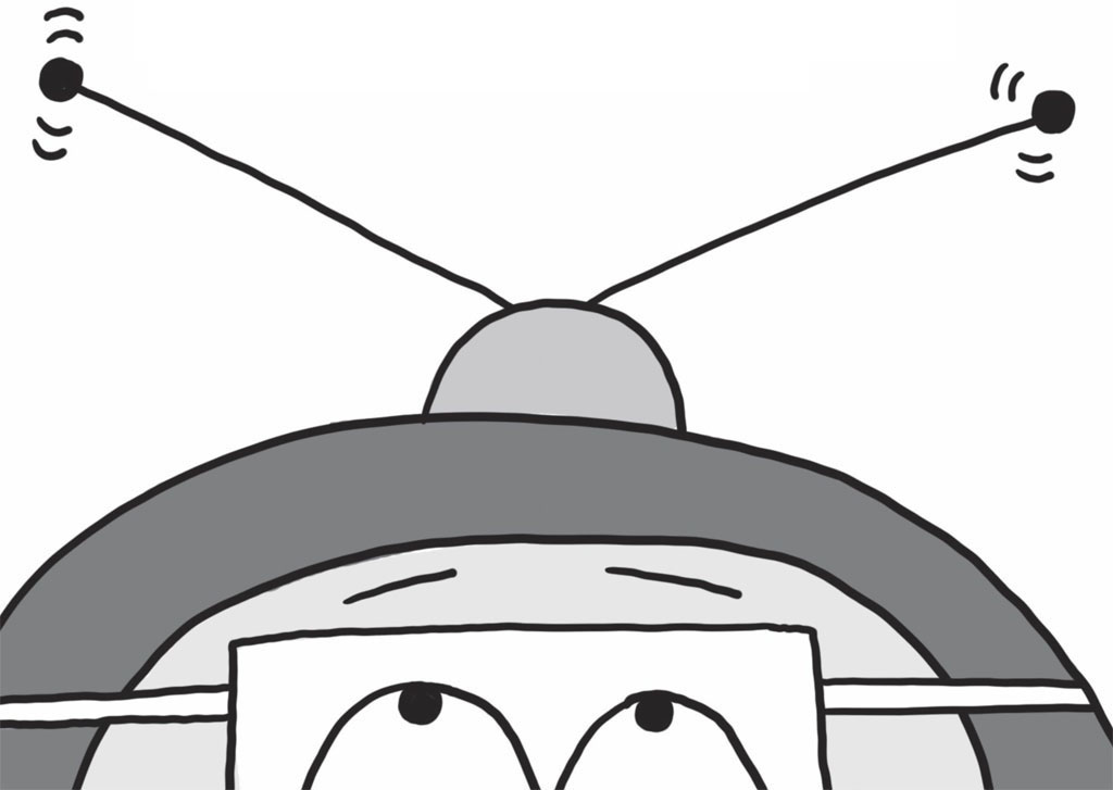 ‘Apart from us, Bunny!’ I said to make her feel better. I took a sip on my avocado and felt-tip pen flavour soda, and the two little television aerials that’ve been sticking out of my head ever since I got zapped into the future did a wiggle.
