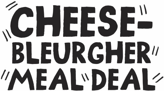 Oh yeah, and a Cheesebleurgher Meal Deal is a cheesebleurgher, a packet of zigzaggedy-shaped chips and a cup of whatever drink you were thinking of at the exact billisecond the meal fizzled to life.
