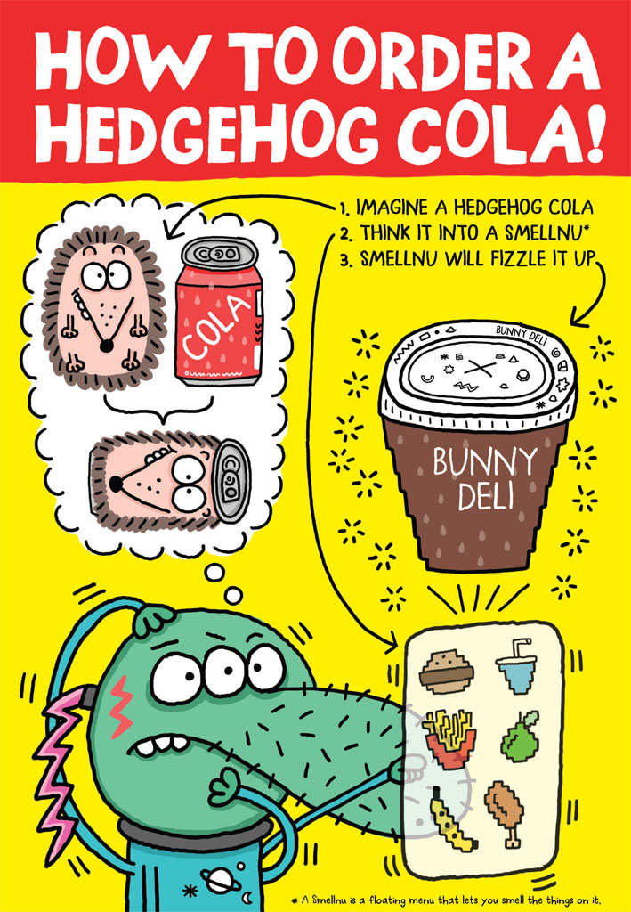 ‘Ooh, I’ll have that!’ said Bunny, shooting one of her ten arms out and catching the Hedgehog Cola before it landed in Dennis.