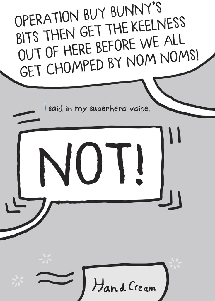 ‘I see . . .’ said Dr Smell, his eyes staring blankly in front of him like he was watching TV, and the Floaty Note 6000 did a little cough to remind us about Bunny’s shopping.