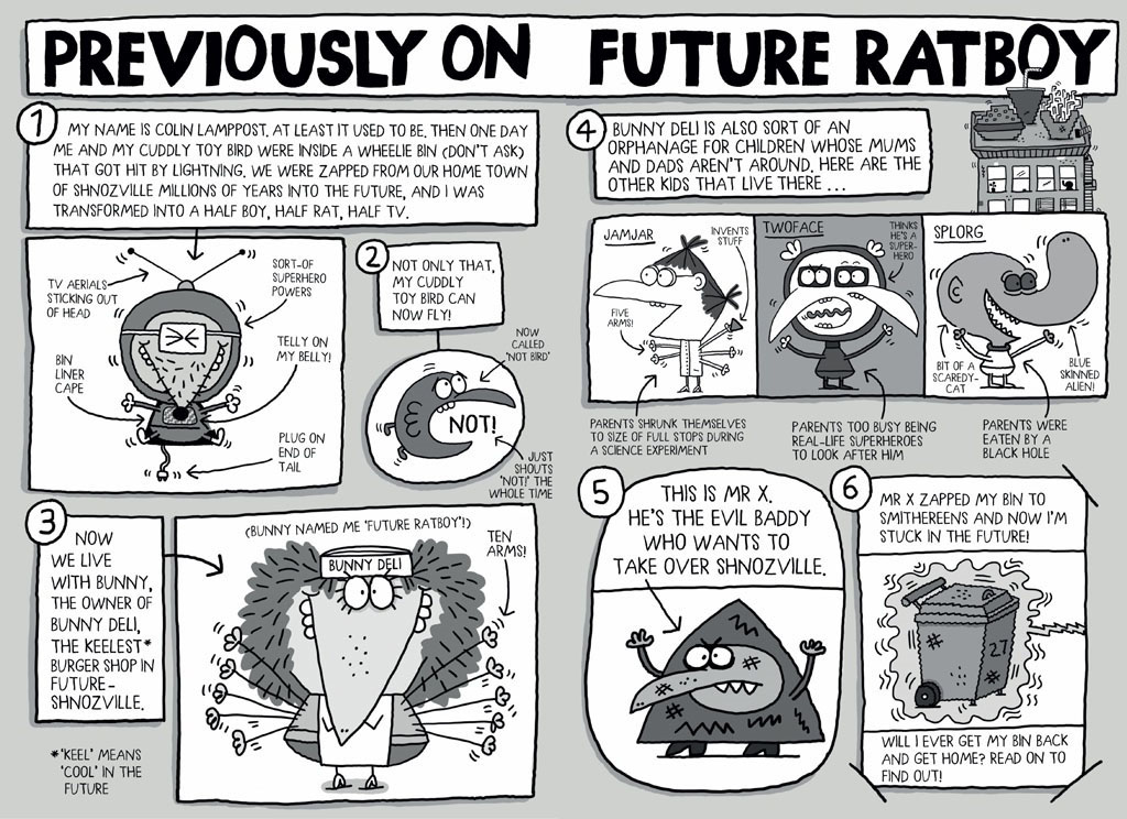 Probably the best thing about getting zapped millions of years into the future and turned into a superhero rat is that I don’t have to go to school any more. (Kids don’t go to school in the future.)