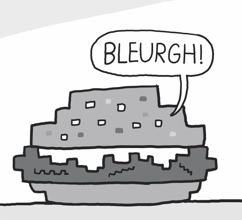 A cheesebleurgher is a cheeseburger that goes ‘BLEURGH!’ when you bite into it, by the way.