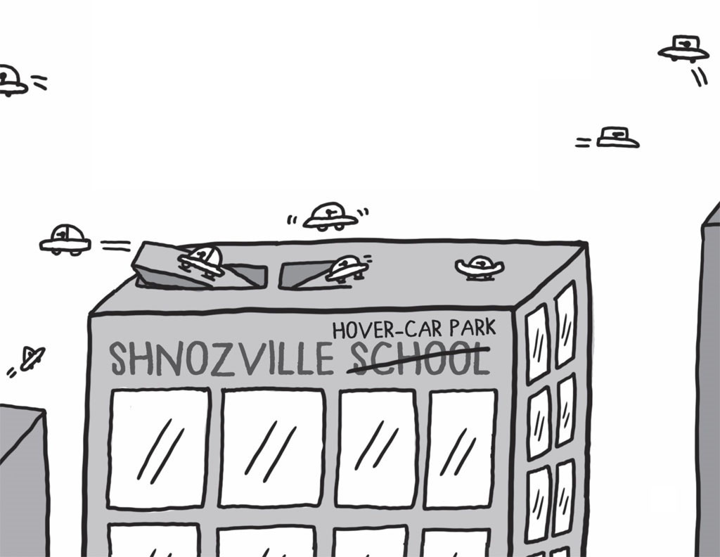 A car floated past while a dog did a hover-poo on the pavement. ‘I don’t know what’s going on,’ she said. ‘Nobody seems to want a Cheesebleurgher Meal Deal today . . .’