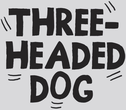 Three Nom Noms – one yellow, one orange and one green – whizzed past on the other side of the street, stopping to bite a three-headed dog on its noses.