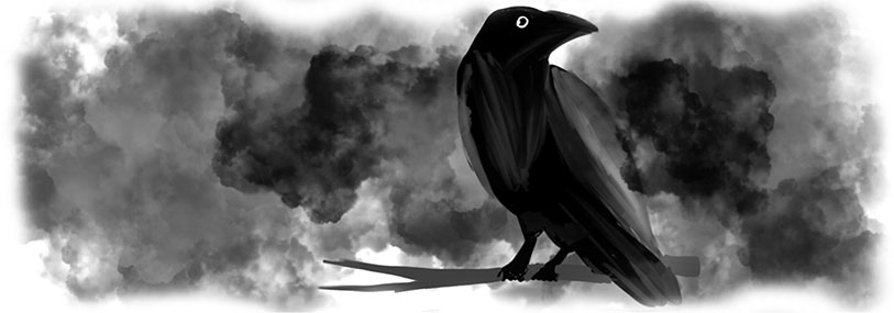 Та придвинулась ближе и обе руки положила на голову собаки. Ворон лёгким движением перескочил прямо на спину распростёртой страдалицы и, распустив свои чёрные крылья, накрыл её, как плащом. Наклонив голову набок, он некоторое время молчал, как бы прислушиваясь. Наконец, свернул крылья и изрёк: