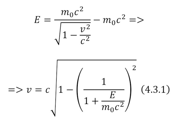 При этом учитывается скорость света равной 299 792 458 м/с, при этом также при делении (отношении энергии к нулевой энергии) имеется ввиду отношение в МэВ. А для использования этой формулы в программе используются лишь переходы в системе единиц.