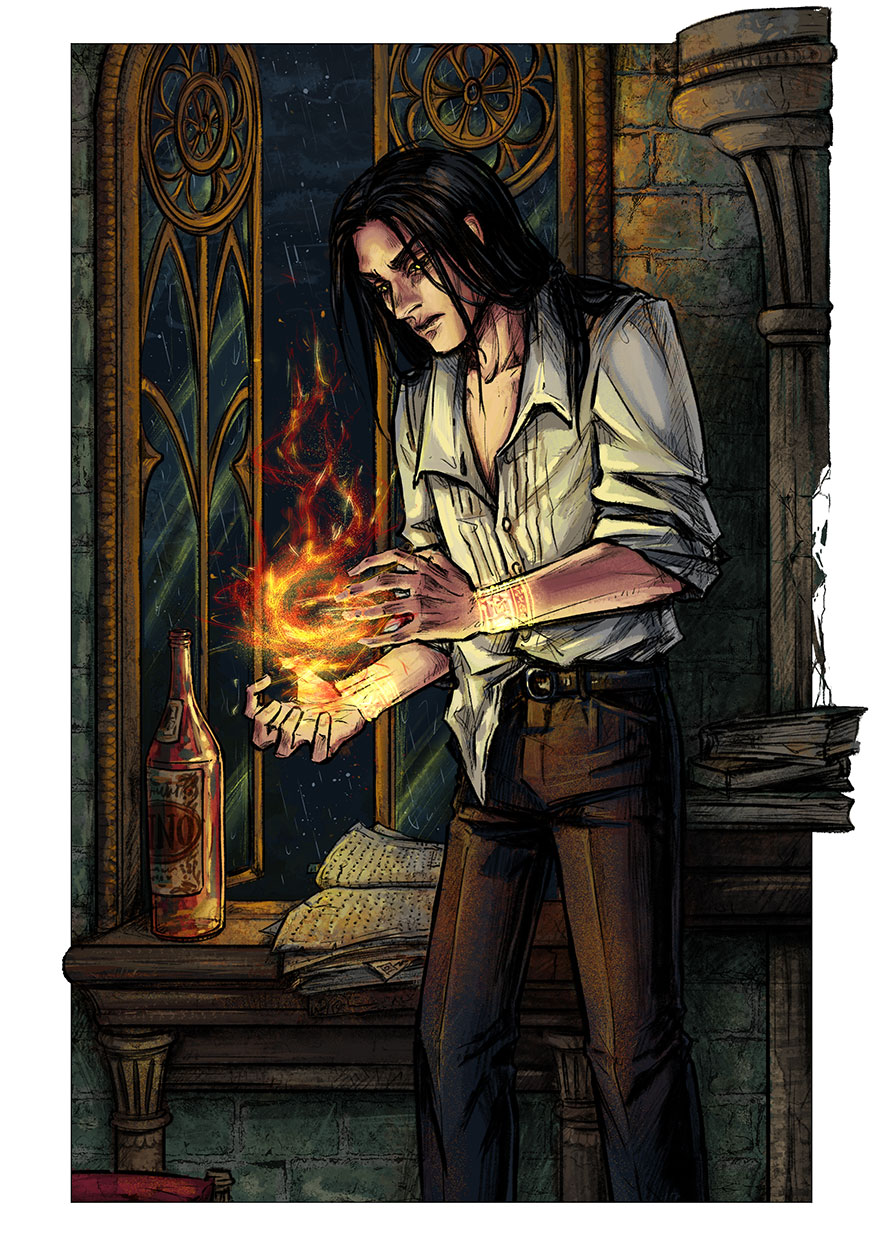 И не ошиблась. В каком-то смысле. Отблески чужого света я заметила еще издалека, а стоило свернуть за угол, как у меня едва не вырвался торжествующий возглас. Незнакомец был там! Почти в таком же виде, в каком я встретила его впервые: черные брюки, белая рубашка с закатанными до локтей рукавами. Разве что длинные черные волосы лежали аккуратнее, перехваченные узкой лентой в тон.
