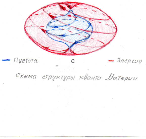 Таким образом, возврат Бесконечной Энергии в Исходную Точку Пустоты приводит к аннигиляции её, порождая квант Материи в виде тороидального вихря кванта Энергии вокруг кванта Пустоты и двойной вихрь кванта Энергии, сопровождающийся взрывом и выделением тепла.
