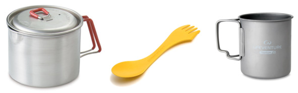 Everything is very simple here: you eat what you take. To prepare food, I took a MSR Titan Tea Kettle 850 ml saucepan with a lid (130 grams), a Lifeventure Titanium Mug 450 ml (55 grams), a spoon-fork (10 grams), a lighter (11 grams), and… that’s all. A gas stove is prohibited due to the high temperature in the desert.