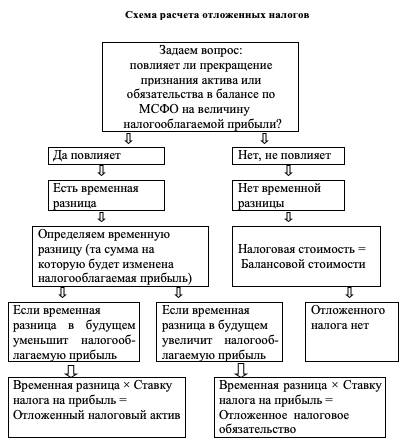 Если налоговую стоимость актива или обязательства определить затруднительно, то для расчета отложенных налогов рекомендуется использовать схему, представленную ниже.