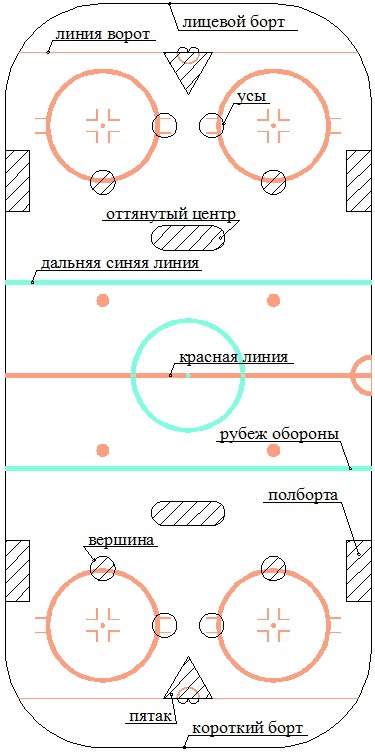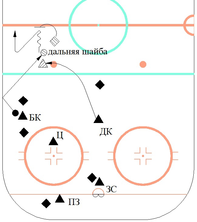 БК – ближний край. Крайний нападающий, работающий по позиции полборта, на середине ближнего к шайбе длинного борта.