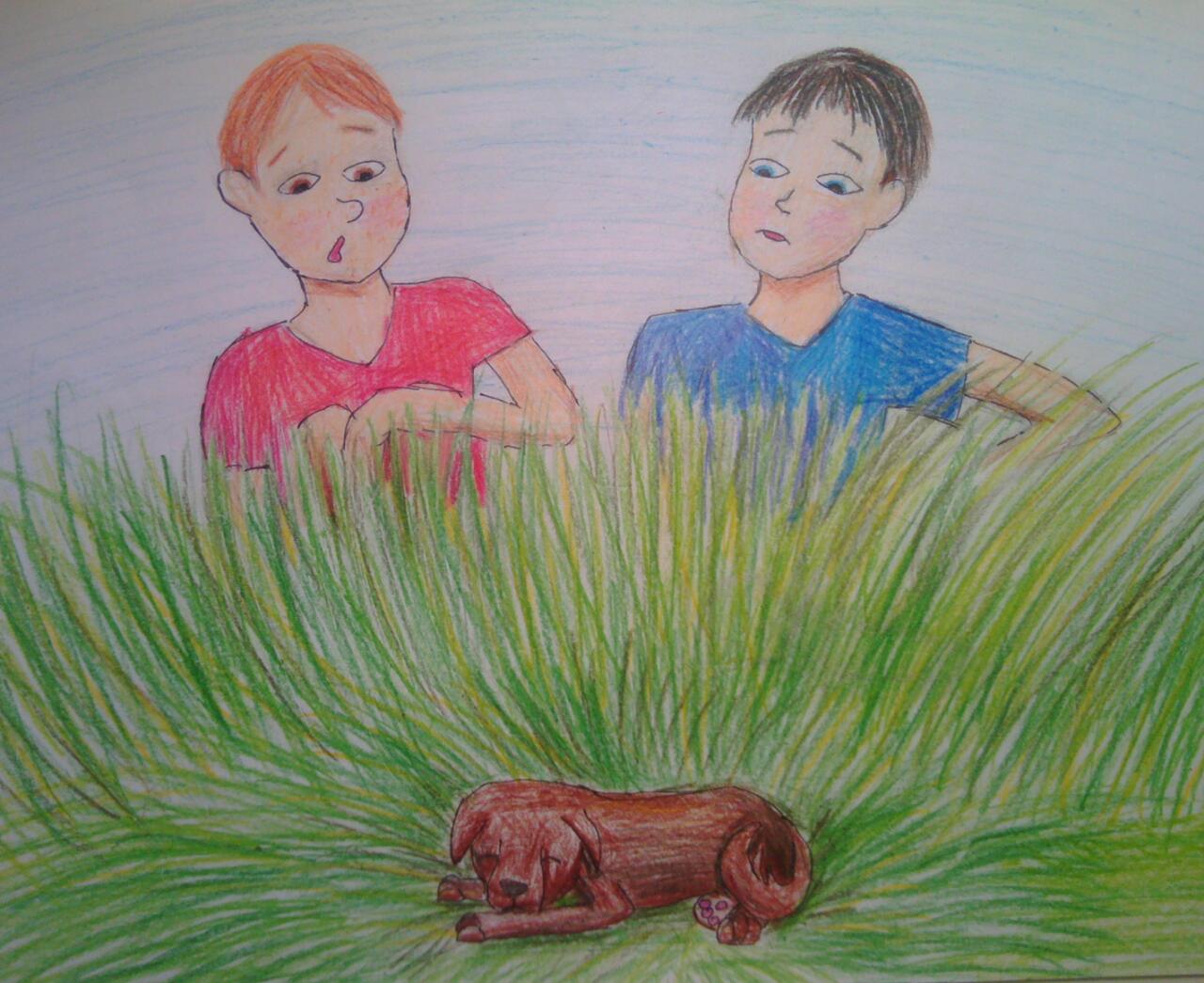 Нашим друзьям Роме и Андрейке исполнилось по семь лет, это были веселые, беззаботные мальчишки, которые неожиданно стали совершенно свободными. Детский сад выпустил свою очередную подготовительную группу, отправляя малышей в школьную жизнь. Родители их записали в один первый класс, но учебный год начнется осенью, а сейчас был только июнь. Они любят играть в футбол на небольшой спортивной площадке, обустроенной местными жителями для своей ребятни. Там стоят маленькие ворота, по бокам пара длинных скамеек и недалеко песочница для малышей. Бегают ватагой на лужайках, играют в вышибалы, казаки– разбойники, а дома увлекаются компьютерными играми, доходят в них до самых высоких уровней. Друзья постоянно бывают вместе и с ними часто что-нибудь происходит. Как– то раз Ромка и Андрейка нашли на полянке, заросшей высокой травой, щенка. Он был еще совсем маленький светло-коричневого цвета с обвислыми ушами. Небольшая мордочка лежала на передних лапах, а грустные глаза жалобно смотрели на мальчиков. Но вот щенок приподнял голову и издал тихий звук,
