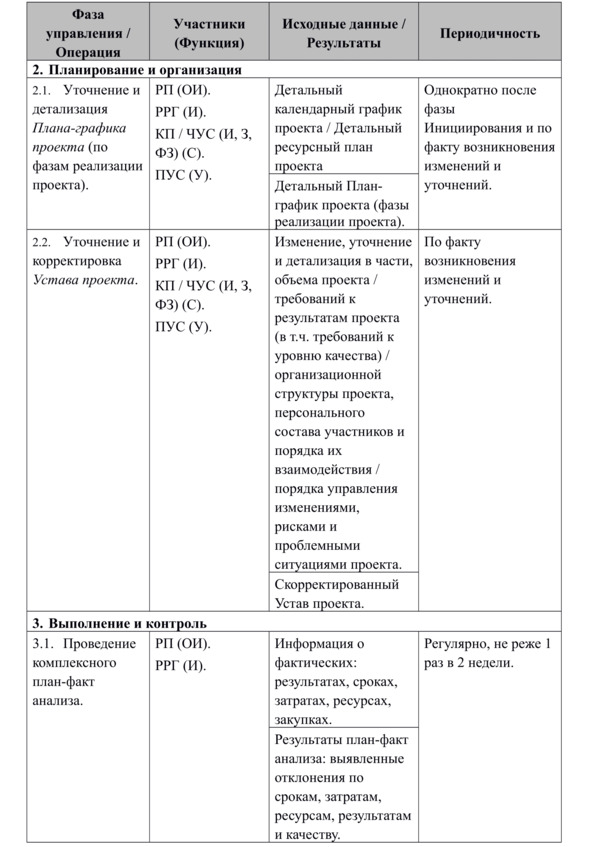 Устав проекта и План-график проекта предлежат регулярному уточнению и детализации по факту появления (выявления) новой информации, либо возникновения изменений (в соответствии с процедурами управления изменениями).