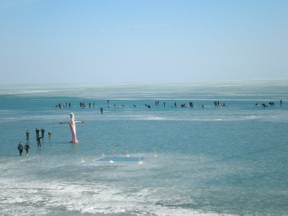 И вот, что интересно, лёд на Балхаше настолько прозрачный. Прямо чистое стекло, слегка зеленоватое.