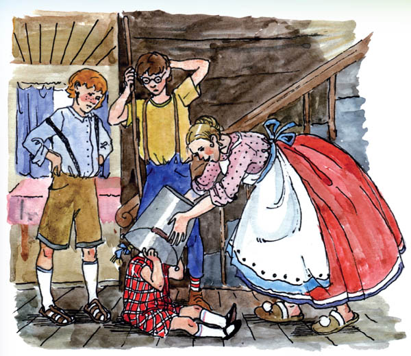 – Хорошо, – сказала Хитрюша, потёрла коленку, надела ведро на голову и пошла дальше.