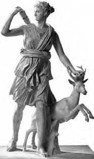 В античном искусстве Артемида изображалась юной охотницей, в коротком хитоне (льняной рубашке); за спиной у неё колчан со стрелами, а у ног – любимая лань. В честь Артемиды был построен храм в городе Эфес. Артемиде соответствует римская богиня Диана.