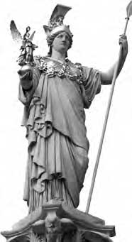 Афина стояла на страже порядка. Её именем назван город Афины. В споре за покровительство этому городу она победила морского бога Посейдона: он смог подарить горожанам лишь коня и ручей с солёной водой, а богиня Афина дала им своё священное дерево, маслину, – источник масла для богослужения и приготовления пищи. В Афинах находится главный храм богини – Парфенон. Афина обычно изображается суровой и величественной девой, в полном вооружении. У её ног располагается сова (священная птица), иногда змея. Афине соответствует римская богиня Минерва.