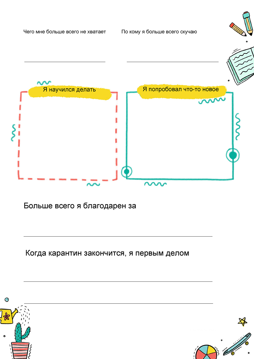 17. Напишите список ежедневных «челленджей», скажем, прочитать столько-то страниц, создать художественный проект, собрать головоломку, позвонить другу или родственнику, или что-нибудь построить.
