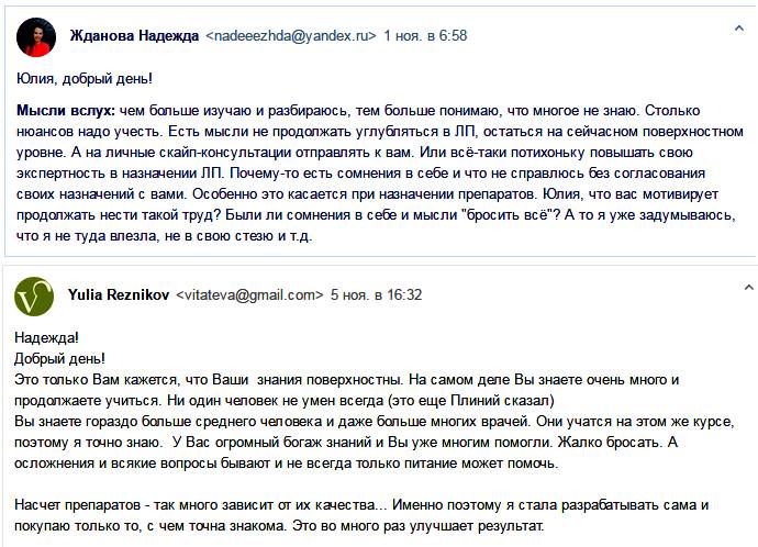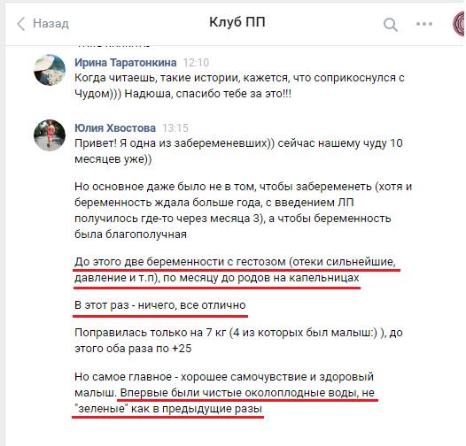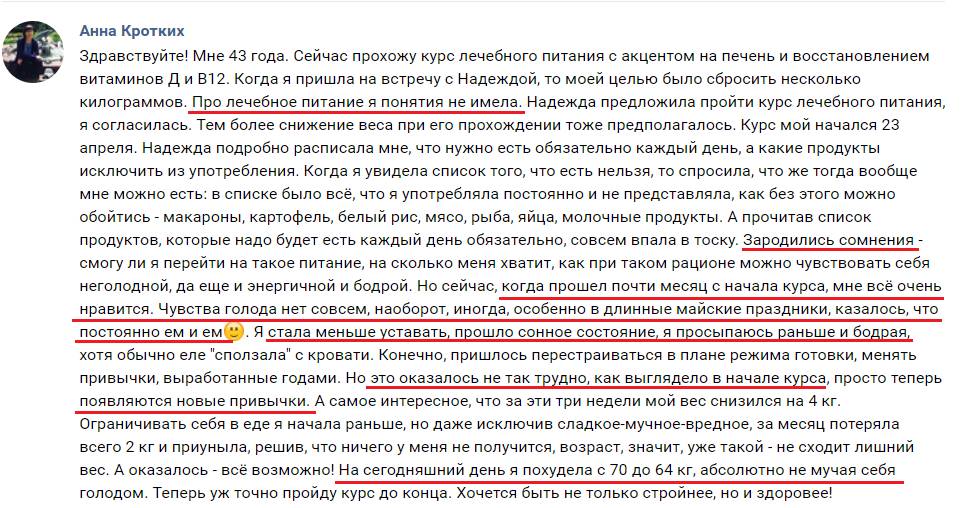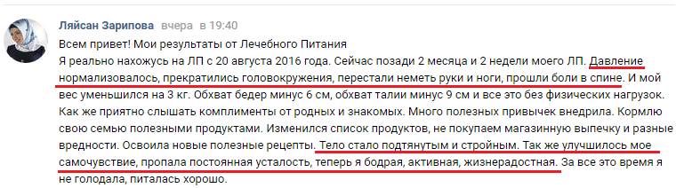 Вот лишь некоторые отзывы участниц, прошедших через практику лечебного питания (выбрала разные случаи):