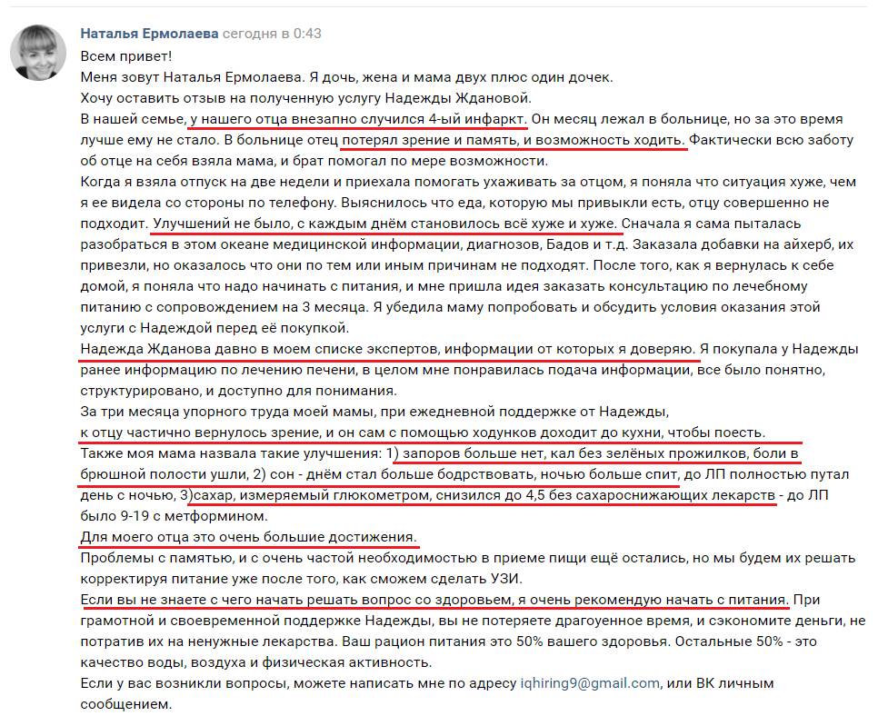 Мне было приятно! Благодарна каждому, кто поверил в меня и мои обещания. Деньги как раз ушли на обучение. Моя практика лечебного питания была опробована на них. Каждую программу лечебного питания я согласовывала с учителем 20-летнего стажа. Исправляла ошибки и только потом, вместе с моими первыми учениками пропускали программы через себя. Я училась вместе с ними. Вместе пробовала предложенные рецепты восстановления здоровья. Вместе с ними получала новые улучшения по здоровью. Вместе задавали вопросы, искали на них ответы. Вместе накапливали личный опыт перехода на другое питание.