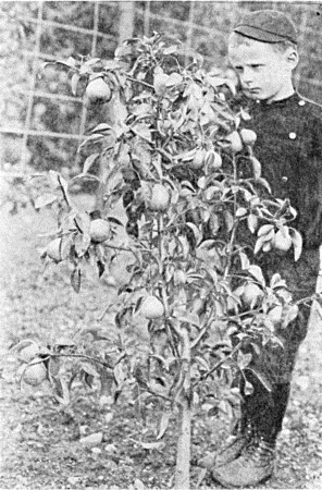 Those who are used to seeing large fruit trees in orchard plantations where each specimen has 1,000 to 2,000 square feet of space, with unlimited opportunities downward, find a fruit tree in a pot a curiosity. It seems remarkable to see a tree in vigorous health and bearing fruit with less than one cubic foot of soil. Nevertheless this method of handling fruit trees is entirely practicable. In some places it is practised extensively in an amateur way, and occasionally reaches almost commercial proportions. For those who grow fruit trees for recreation there could hardly be a more interesting experiment.