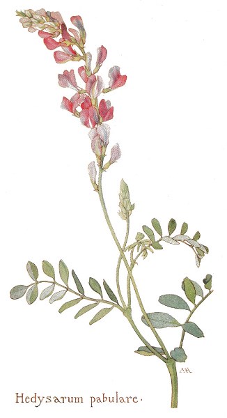 A rather attractive little plant, three to eight inches tall, with smooth leaves and many slender, smooth, woody, stems, springing from slender rootstocks. The purplish-pink flowers become deeper in color as they fade and are quaint in form, over half an inch long, with pink "wings" and yellowish "keel," the petals downy inside and the middle one curving over to form a hood, in which the stamens and style are concealed. This plant has the odd habit of bearing another sort of flower near the root, maturing most of the seed, but without petals, and grows on dry, shady hillsides in the Coast Ranges.