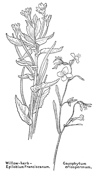 There are many kinds of Epilobium, differing from Chamaenerion chiefly in the calyx-tube, which is prolonged beyond the ovary.