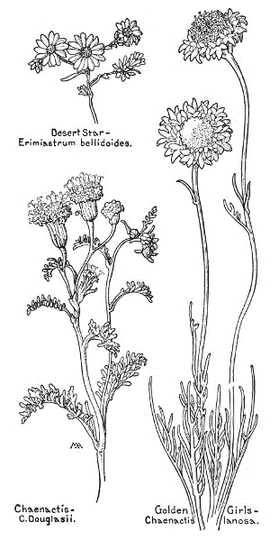 There are a good many kinds of Chaenactis, the flower-heads with tubular flowers only, but in some kinds the marginal flowers are larger and have a broad border resembling a kind of ray.