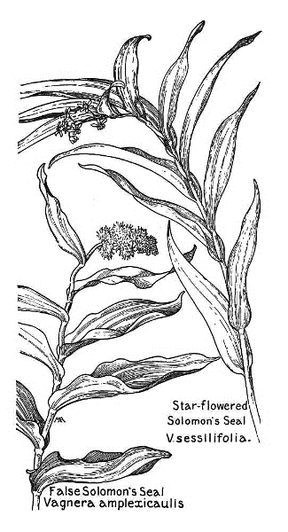 There are a good many kinds of Vagnera, natives of America and Asia, with a single stem, scaly below and leafy above; the leaves alternate, with short leaf-stalks or none; the flowers small, the divisions equal and spreading, white or greenish, in a cluster; the berry round, usually with one or two seeds.