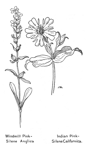 There are many kinds of Silene, widely distributed, more or less sticky plants, hence the common name, Catchfly; flowers mostly rather large; calyx inflated or tubular, with five teeth; petals five, with long claws, which often have scales at the top, forming a "crown"; stamens ten; styles usually three; capsule opening by three or six teeth at the tip; seeds numerous.
