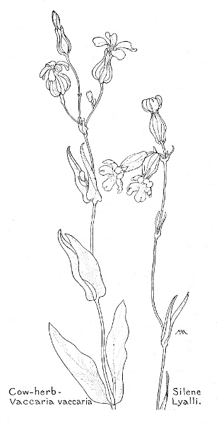 There are a few kinds of Vaccaria, of Europe and Asia, smooth annuals, with clasping leaves and red or pink flowers in terminal clusters; calyx five-angled and inflated in fruit, five-toothed, without bracts; petals longer than the calyx, without appendages; stamens ten; styles two. Both the Latin and common names allude to the value of some kinds for fodder.