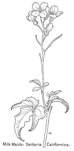 There are several kinds of Dentaria, smooth perennials, with rather large white or pink flowers and tuberous rootstocks.
