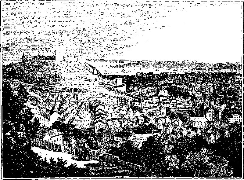 It is a goodly sight to seeWhat Heaven hath done for this delicious land!What fruits of fragrance blush on ev'ry tree!What goodly prospects o'er the hill expand;But man would mar them with an impious hand.BYRON.The Engraving represents one of the most comprehensive views of the city, obtained from an eminence crowned by the chapel of Nossa Senhora da Monte. It has been copied from one of Colonel Batty's faithful Views,1 and its details cannot better be explained than in the words of the clever artist:
