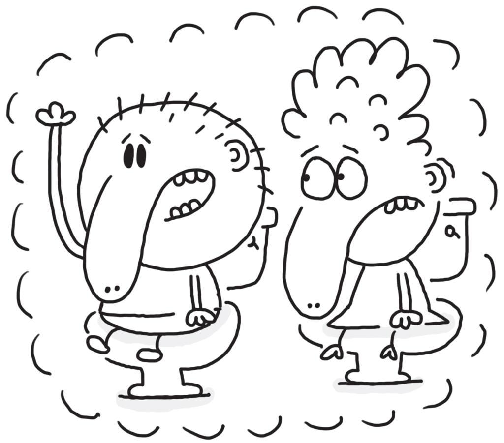 Sharonella’s nose crinkled up. ‘Urgh, we don’t need to hear about your toilet habits, Barry!’ she said.