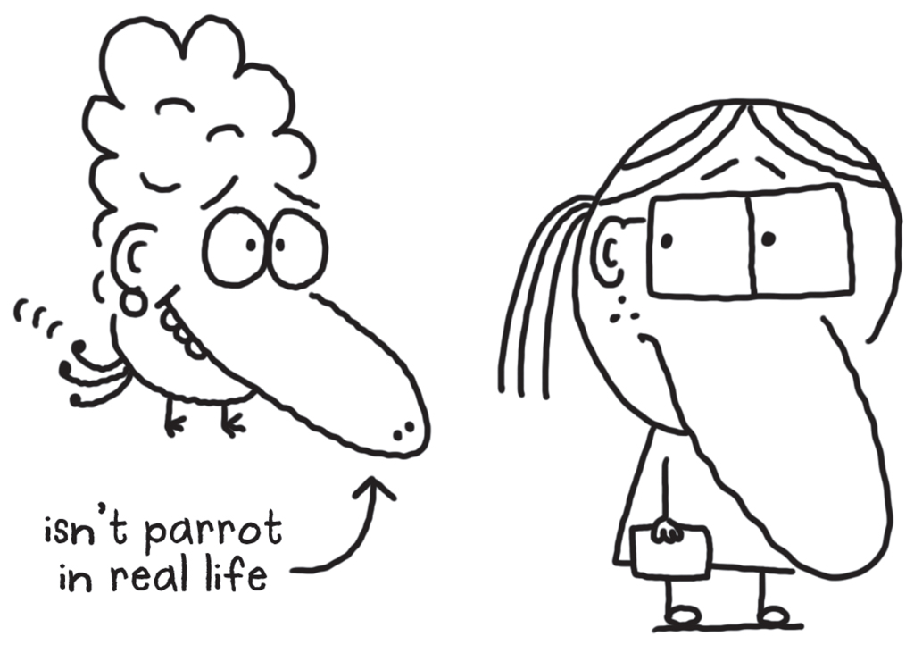 ‘Me too,’ squawked Sharonella. ‘I’m going to the, um . . . toilet.’