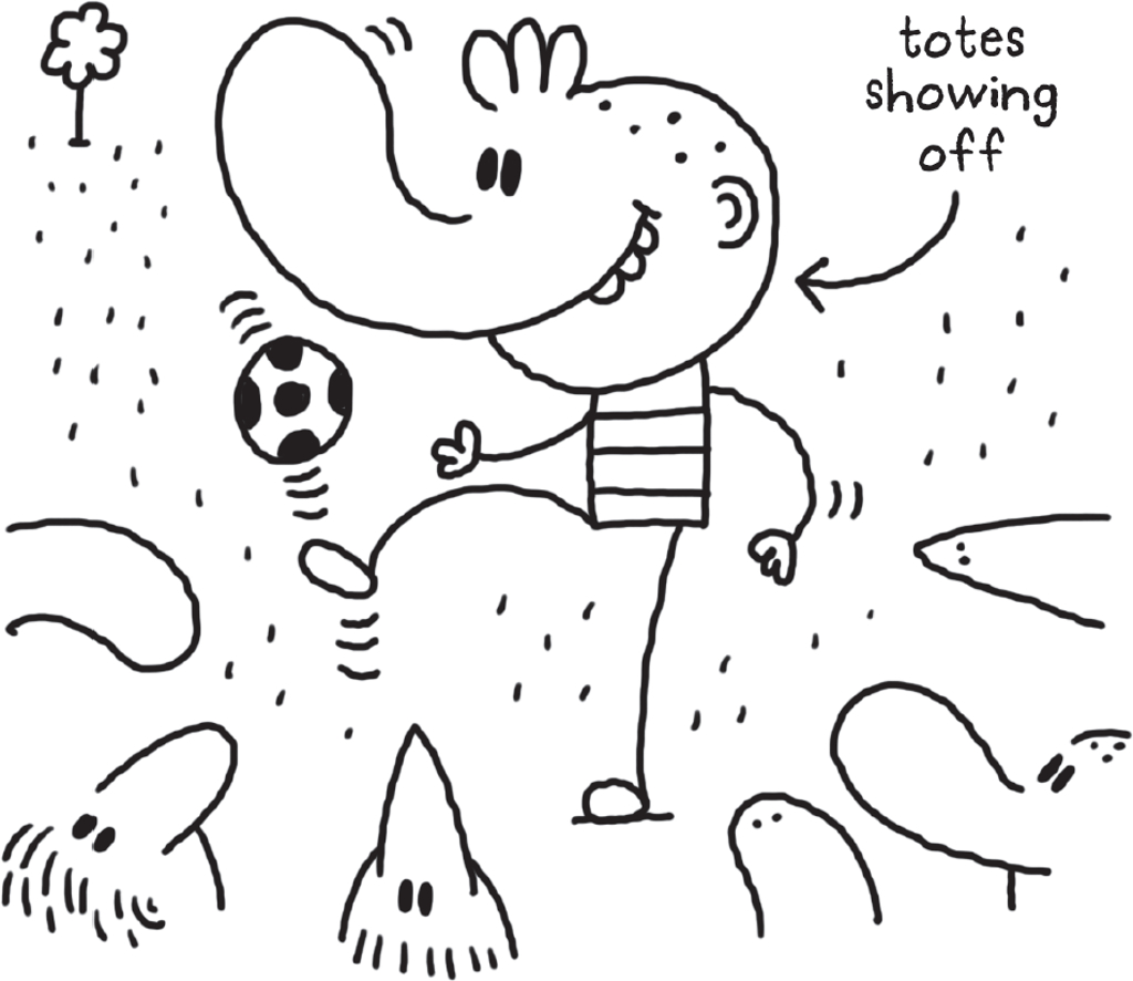 ‘Fanks!’ grinned Bunky, who thinks he’s the best at football out of all of us, probably cos he is.