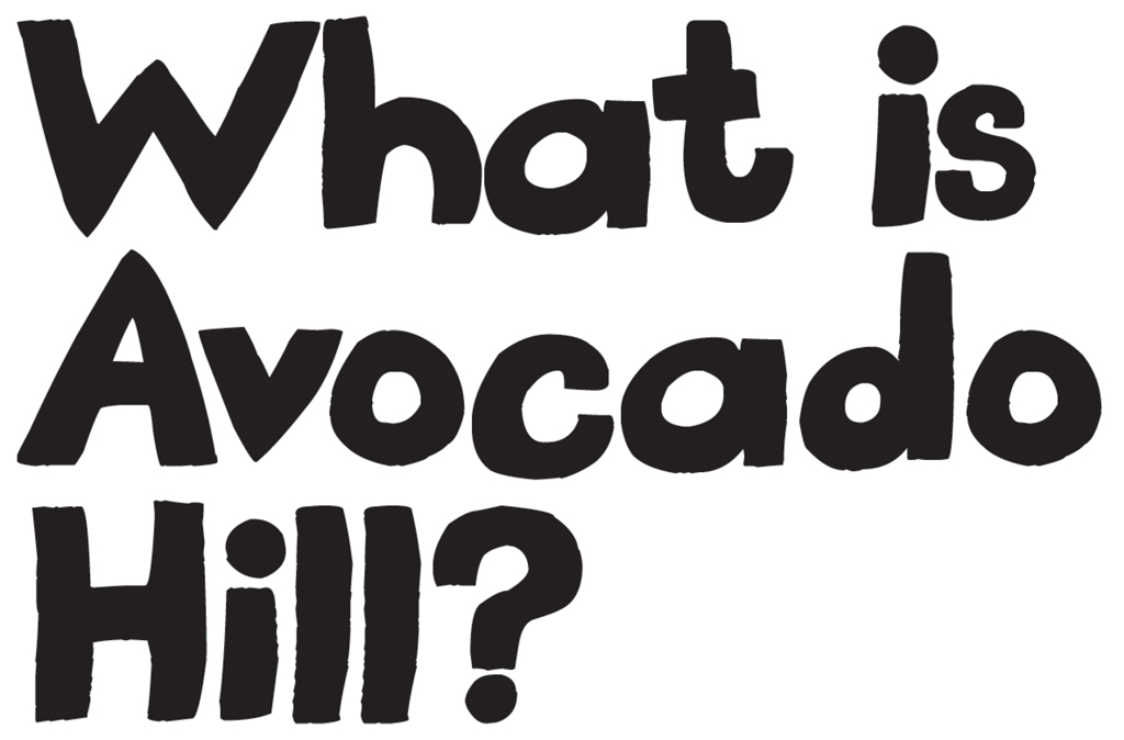 Avocado Hill is the posh little village that sits on top of a slope overlooking Mogden Town.