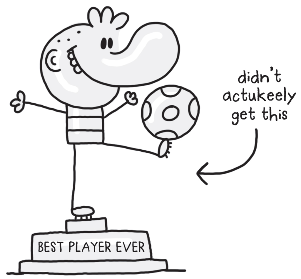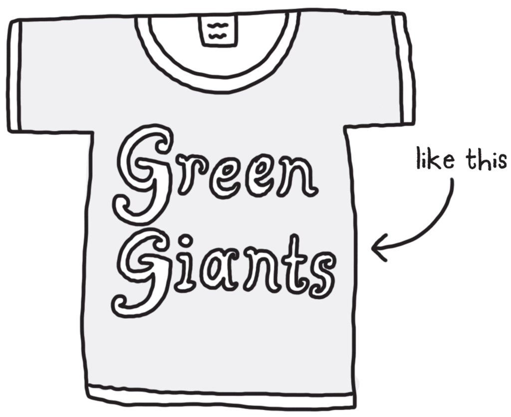 Standing in front of me were five really tall, smug-looking kids wearing shiny green football kits. On the front of their T-shirts were the words ‘Green Giants’.