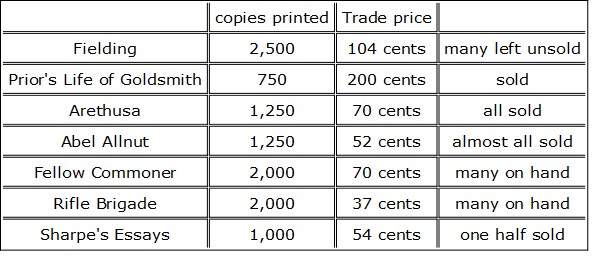 Positive Expenses to PublisherTrade allowance of 10 shillings. 3 pence per copy: 512 pounds 10 shillings.