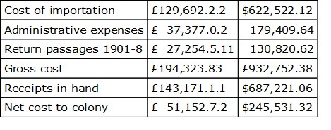 For the years 1891-1908 the cost of this system to the colony is officially reported as follows: